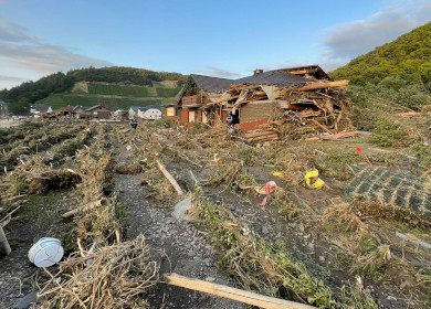 Die Flutkatastrophe im Juli 2021 hat in vielen der betroffenen Ortschaften schwere Verwüstungen angerichtet und etliche Opfer gefordert. Auch einige Bio-Betriebe und vor allem Bio-Winzer*innen haben zum Teil erhebliche Schäden erlitten. Um den Betroffenen schnell und unbürokratisch zu helfen, ruft ein breites Bündnis aus der Bio-Branche zu Spenden für Bio-Höfe in Not auf.